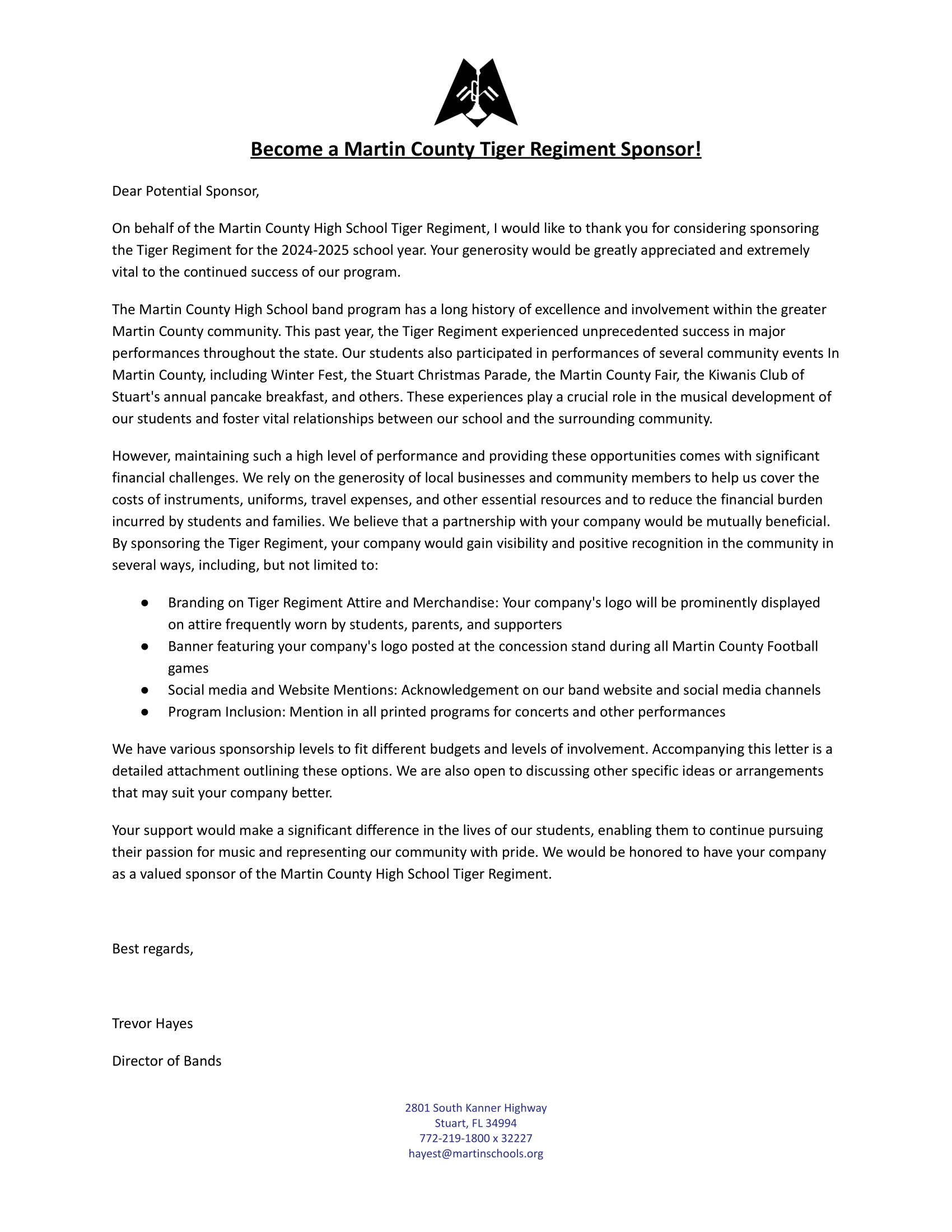 Martin County Band Boosters Inc. are a registered 501(c)(3) non-profit organization.